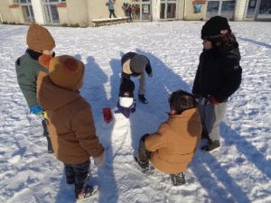 En ce début d’année 2026, les enfants (et les plus grands) ont eu la joie de découvrir les paysages mouzillonnais enneigés. Tous étaient ébahis devant cette impressionnante étendue blanche. Même si la prudence était de mise, quelle joie de profiter de la neige. C’est ainsi que le 6 janvier, quelques élèves accompagnés des enseignantes et ATSEM qui ont pu atteindre l’école ont exploité la cour de récréation d’une nouvelle manière : les bonshommes de neige et autres sculptures se sont multipliés pour orner les différents espaces. Un moment rare qui restera sans doute gravé dans les mémoires !